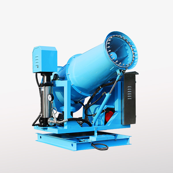 遠程射霧器是根據(jù)風送式原理,用風機產(chǎn)生風量將霧化后的水霧顆粒送到較運距離,塵埃顆粒與水珠顆粒產(chǎn)生接觸而變得濕潤,水霧顆粒能夠到達較遠距離同時能夠覆蓋更大面積,水霧顆粒與粉塵凝結(jié)后降落,從而達到除塵的目的。
